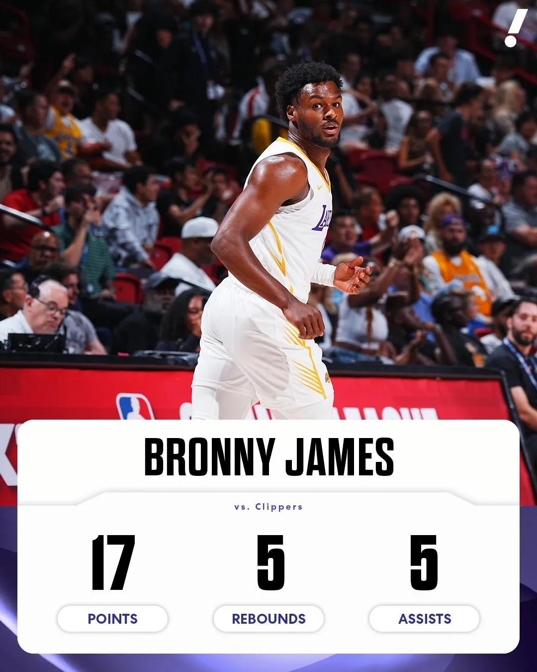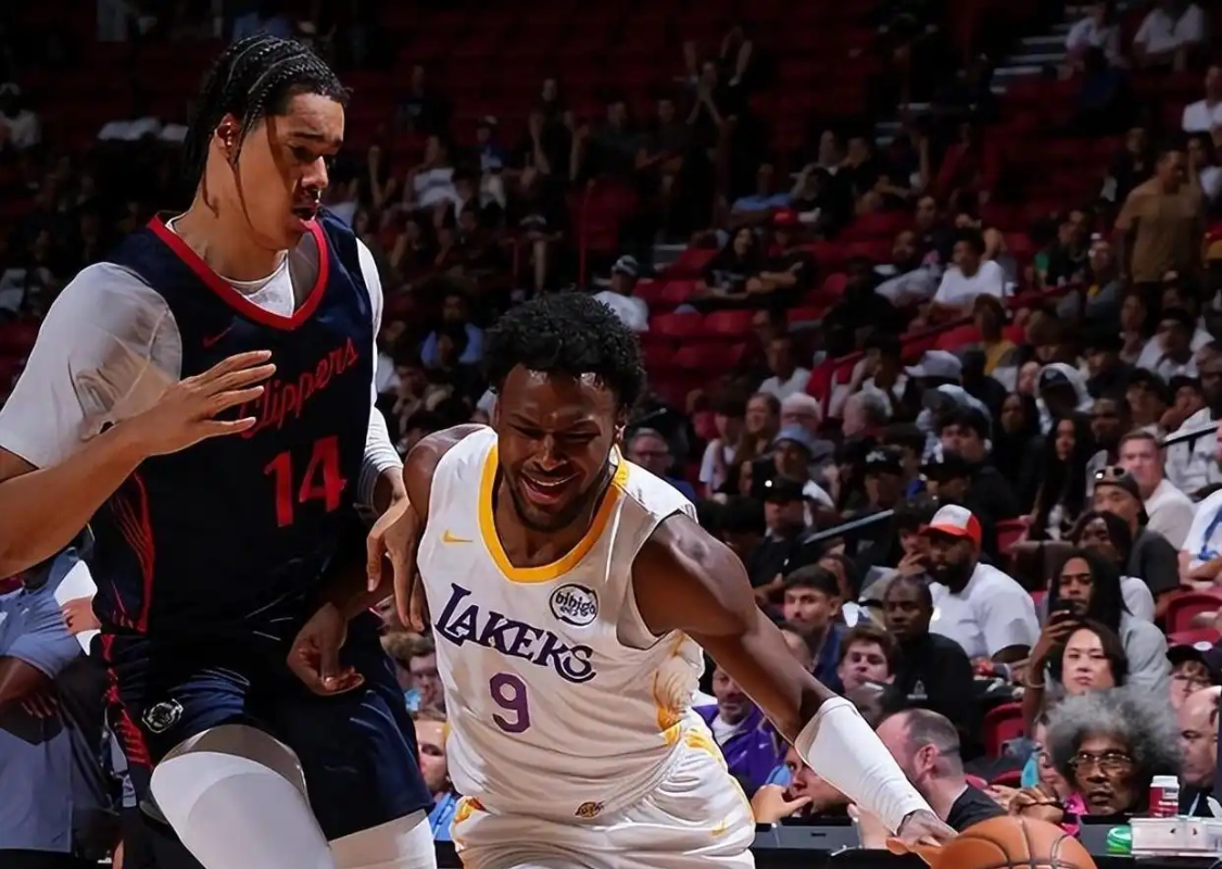 洛杉矶湖人在夏季联赛中以58-67不敌同城对手快船,但这场比赛却让球迷看到了截然不同的两种表现——布朗尼·詹姆斯打出了个人夏联最佳一战,而道尔顿·克内克特则继续深陷低迷,两人的表现形成鲜明对比。